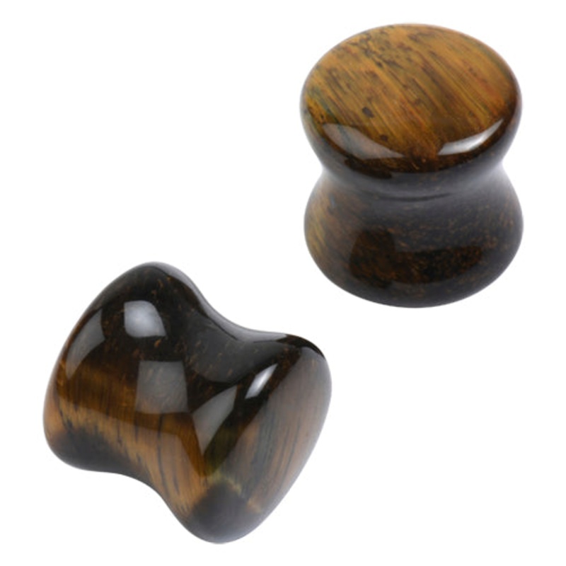 These double flare convex tiger eye plugs have a wearable area of 3/8" between flares. Choose your size below.