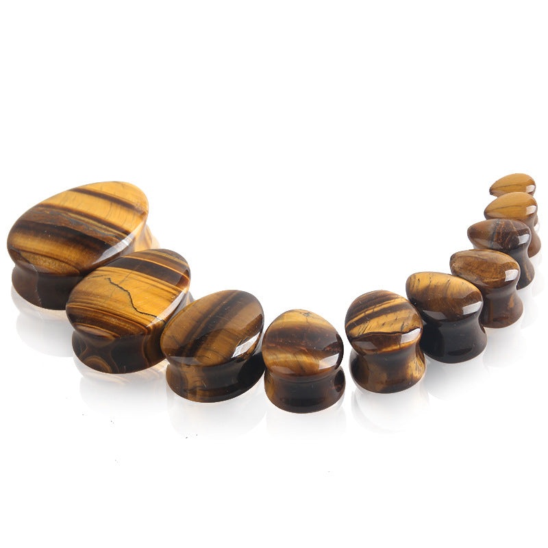 These double flare convex tiger eye teardrop plugs have a wearable area of 3/8" between flares. Choose your size below.