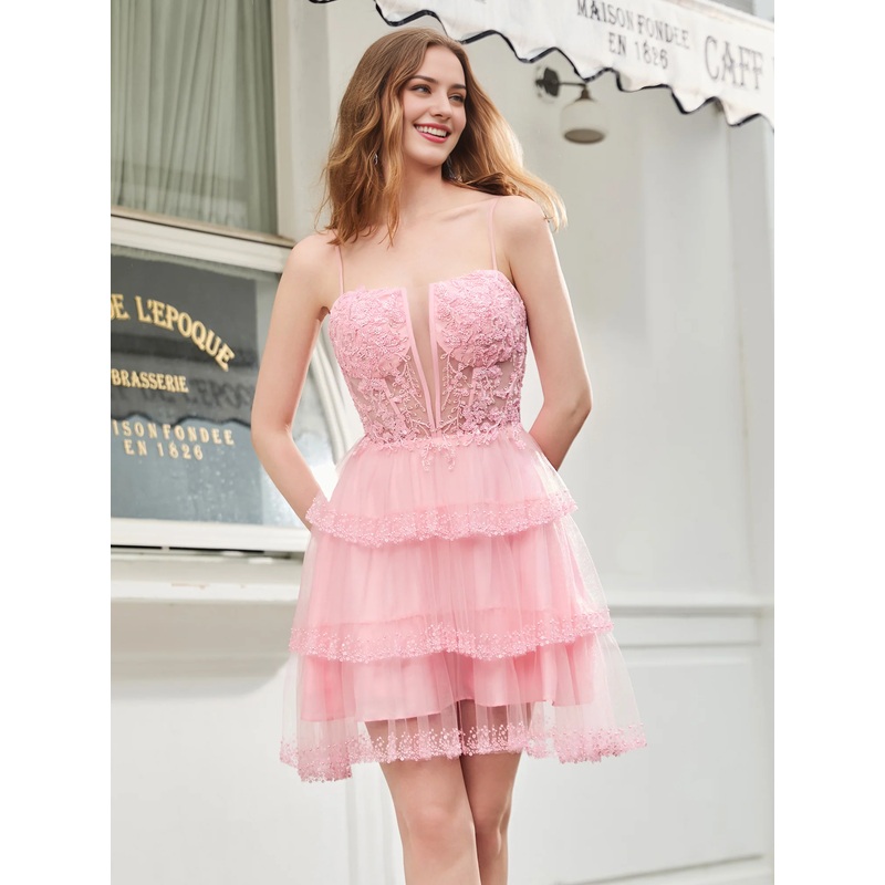 Be the first to review “Tight corset top, sheer layered short Homecoming dress”