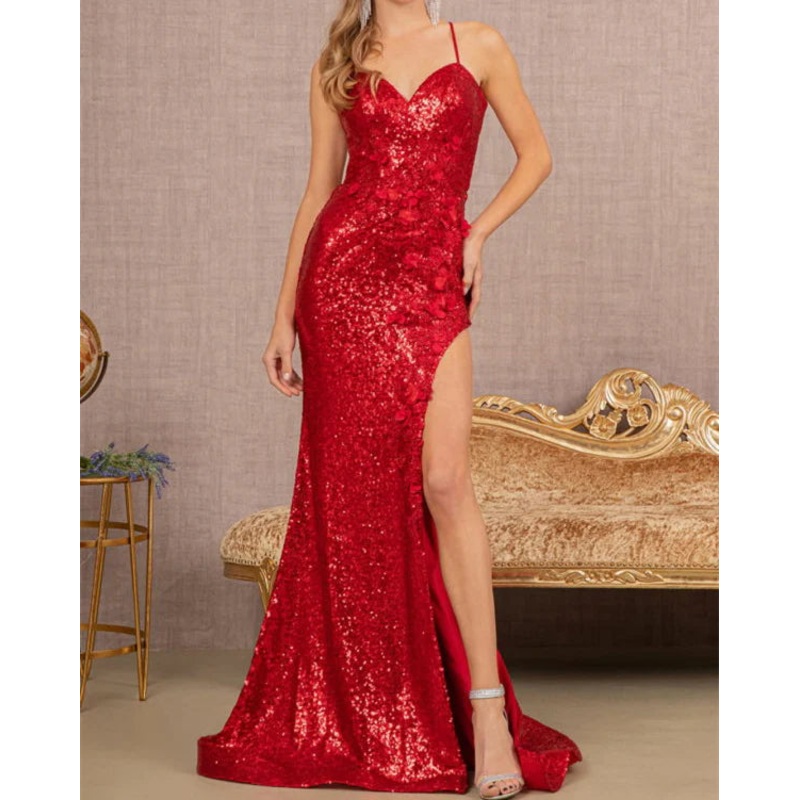 Be the first to review “Tight fit/column style thin shoulder strap sleeveless and floor length style with side slit sequins prom dress”