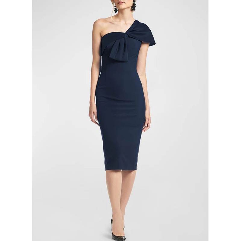 Tight fit/straight leg one shoulder sleeveless knee length bow, mother of the bride dresses