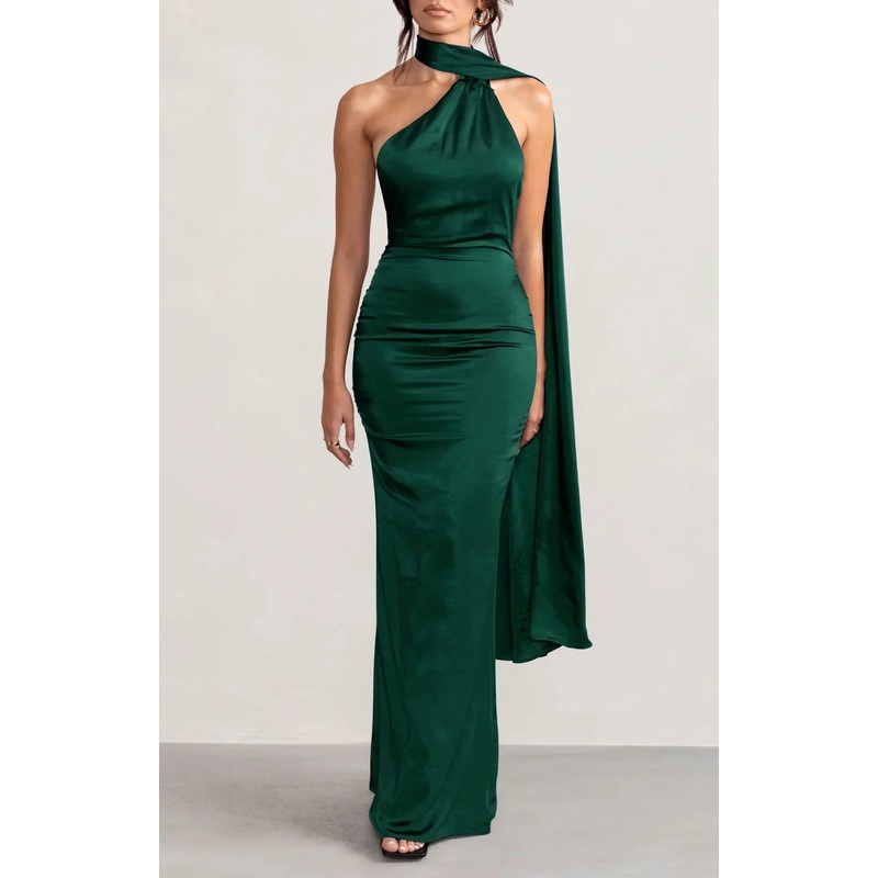 Tight fitting/column hanging neck and floor prom dress