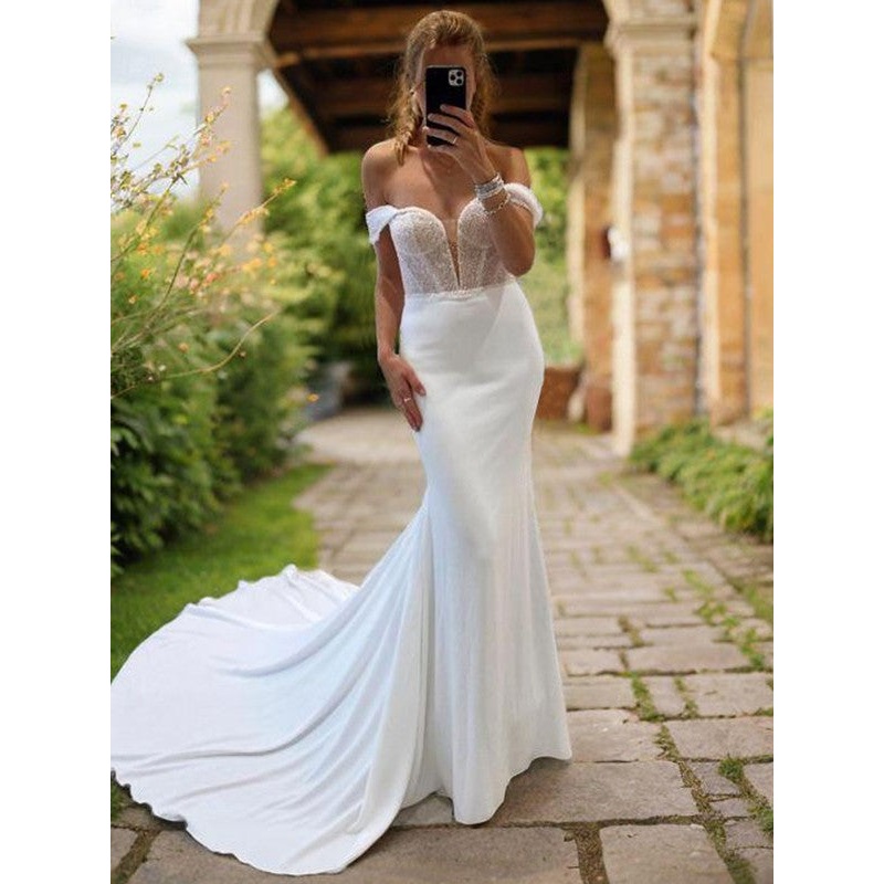 Tight Off Shoulder Palace Trailer Chamaeus Silk Tight Corset Wedding Dress