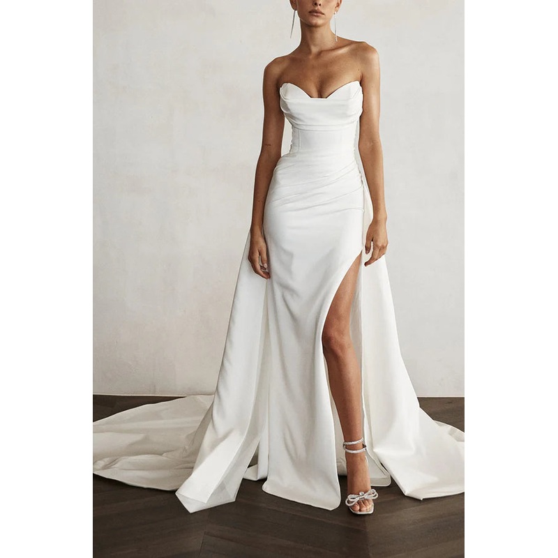 Tight Sweetheart Satin Pleated Side Split Simple Wedding Dress