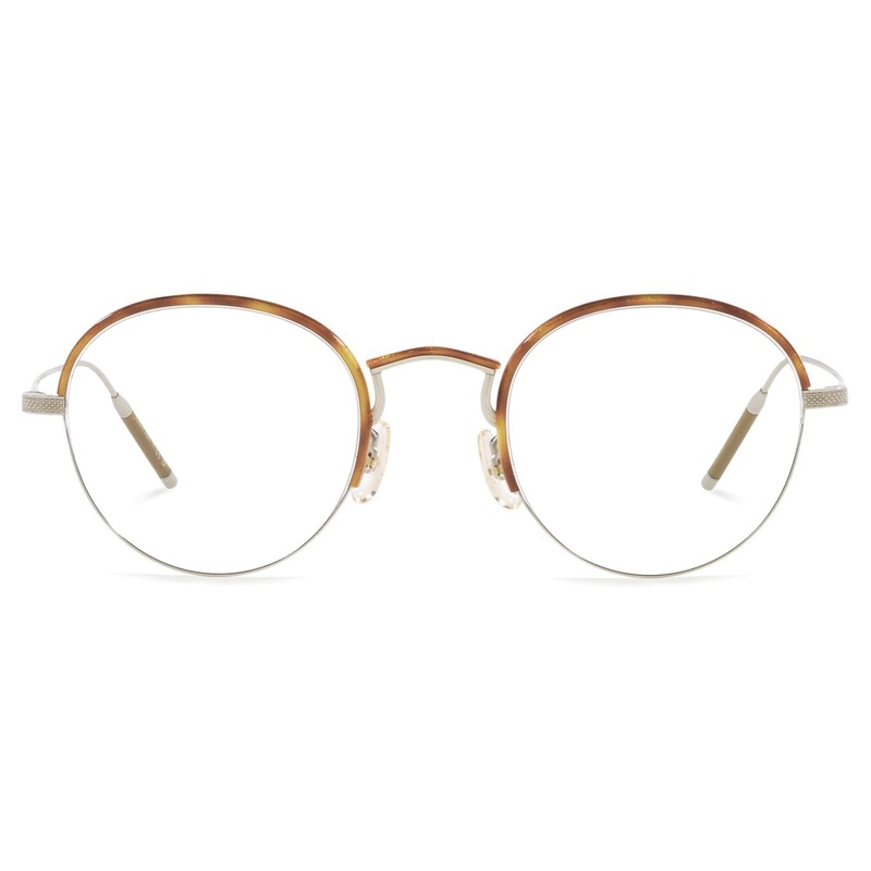 The Oliver Peoples // TK-6 (OV1290T) is a rounded panto optical style featuring a windsor rim that is applied on top of the semi-rimless eyewire and bridge. This alternative application of the windsor rim was an intentional design choice and creates a cont