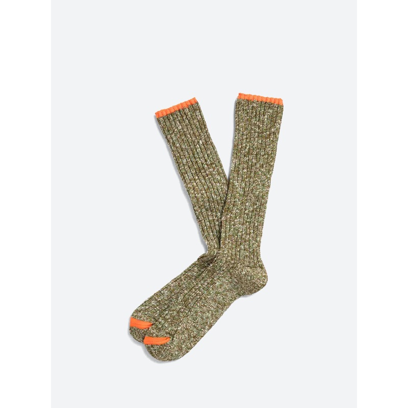 These thicker, ribbed socks are made from high quality recycled cotton. They are knitted with moulin yarns in contrasting colours and a touch of fluorescent give them a boost of modernity.
