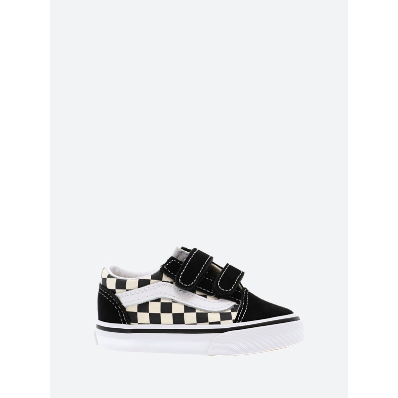 Vans Old Skool V is inspired by the classic skate shoe. A low profile silhouette with sturdy checkerboard printed uppers.Low top sneakerHook and loop closuresPadded collarsLeather side stripeRe-enforced toecapsRubber waffle out-solesMaterialsUpper: canvas