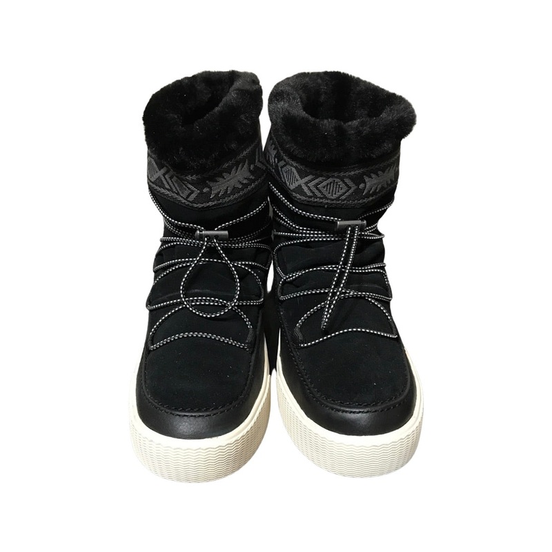 Womens Boots. Black fur, Elastic Laces and Tribal detailing