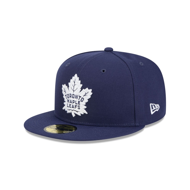 The Toronto Maple Leafs Team 59FIFTY Fitted Cap features an embroidered Maple Leafs logo at the front panels with a matching NHL Shield at the rear and a gray undervisor.
