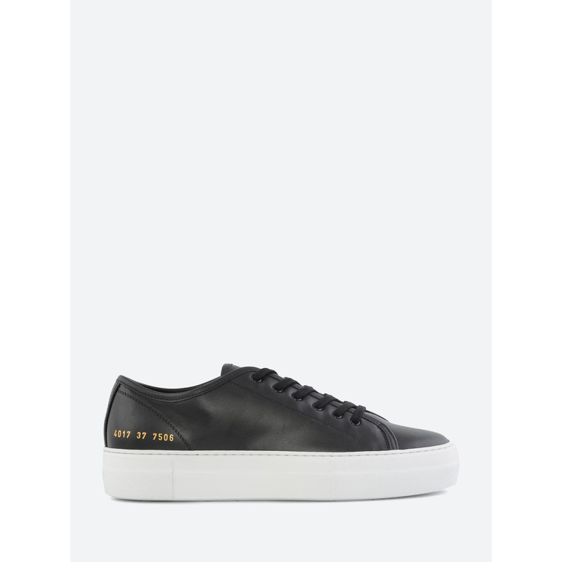 Woman by Common Projects Tournament Low takes cues from some of the most iconic sport footwear. Constructed from Italian nappa leather and leather lined. Features tonal stitching and finished with their signature gold-stamped serial number. Classic sneaker