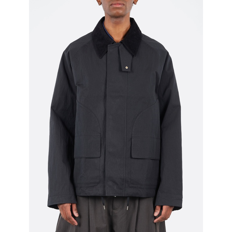 Cut from a blend of organic cotton thats bio washed for a tactile finish, the Towa is a contemporary take on the traditional workwear jacket. It features a contrast collar in soft corduroy, while a snap-fastening throat latch and internal drawstring hem al