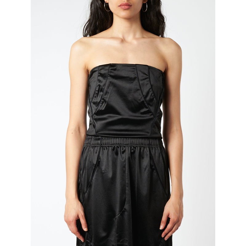 MM6 bustier inspired by track trousers, it features piping details and a sportswear aesthetic.Straight across neckZip closure at the backWhite stitch line at the backShrunken fitMaterialsFabric Content: 97% polyester, 3% elastaneLining: 100% polyamideMade