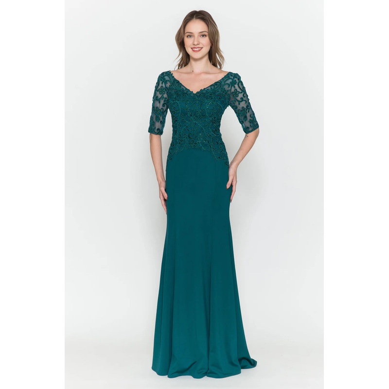 Be the first to review “Transparent half sleeve long V-neck embroidered fitted dress”