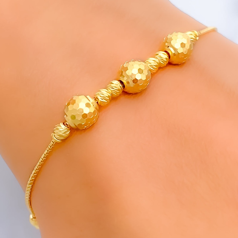 This 22k gold bracelet, weighing 4.7 grams, features a trendy and dynamic design that exudes modern elegance. The yellow gold finish enhances its luxurious and radiant appearance. Measuring 7.9 inches in length, this bracelet is secured with a lobster lock