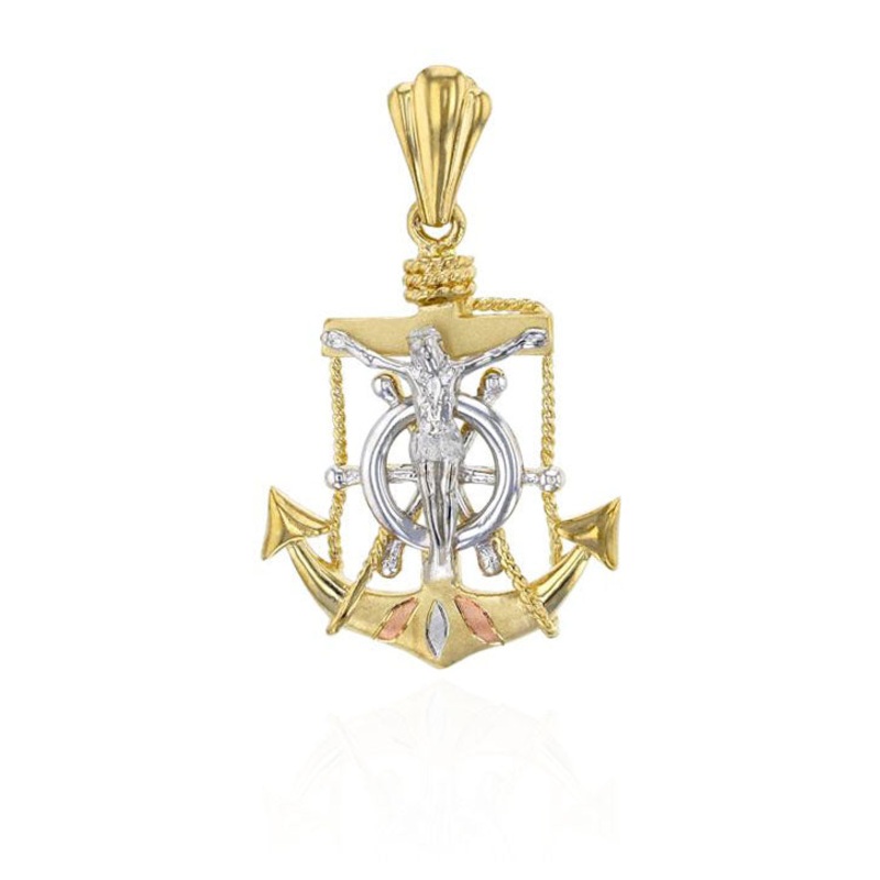 Tri-Color Anchor Jesus Pendant (14K)