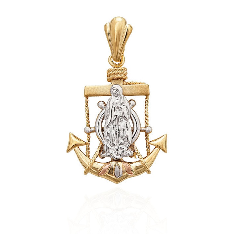 Tri-Color Anchor Virgin Mary Pendant (14K)
