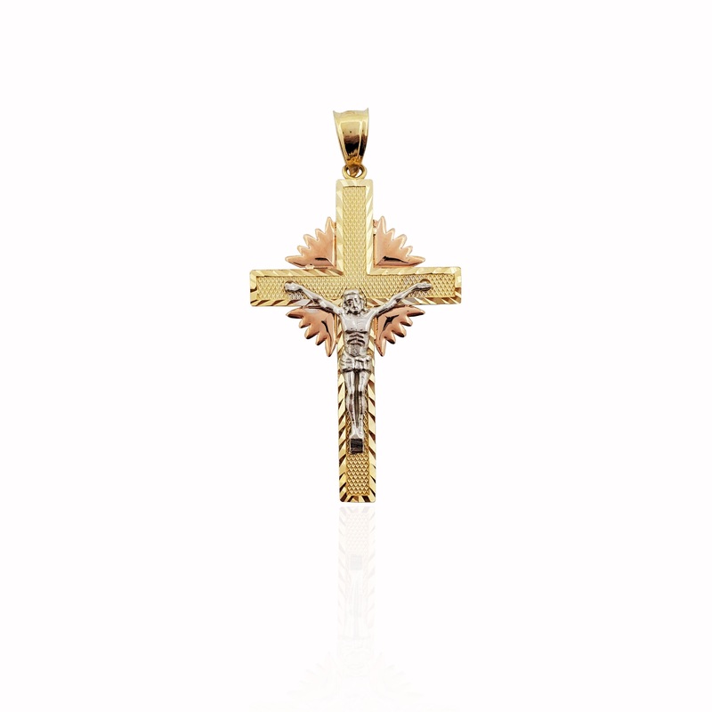 Tri-color Crucifix Pendant (14K). 48.55 mm x 26.80 mm x 3.7 grs