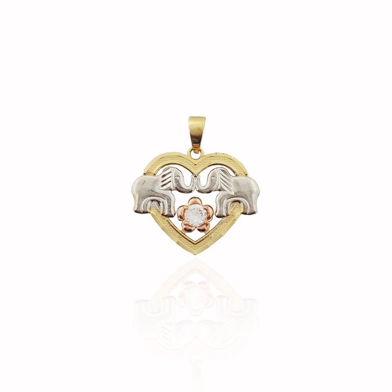Tri-color Elephant Heart CZ Pendant (14K).