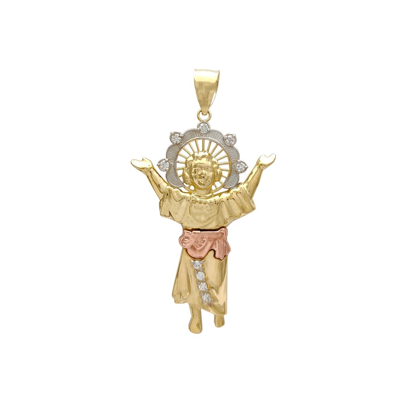 Tri-Color Halo Baby Jesus Pendant (14K) Small: 31.8 mm | 1.3 inch | 1.7 grams