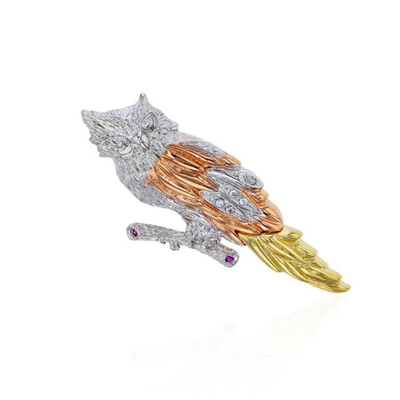 Tri-Color Owl CZ pendant (14K)