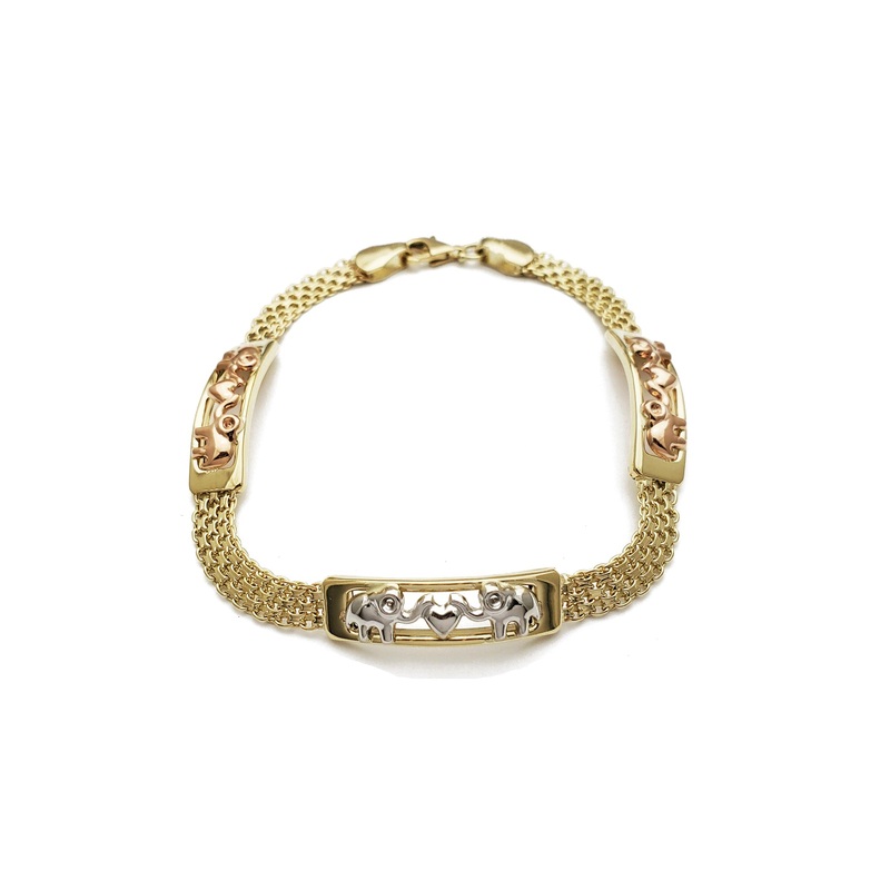 Tri-Color Paired Elephant Bismark Bracelet (14K)