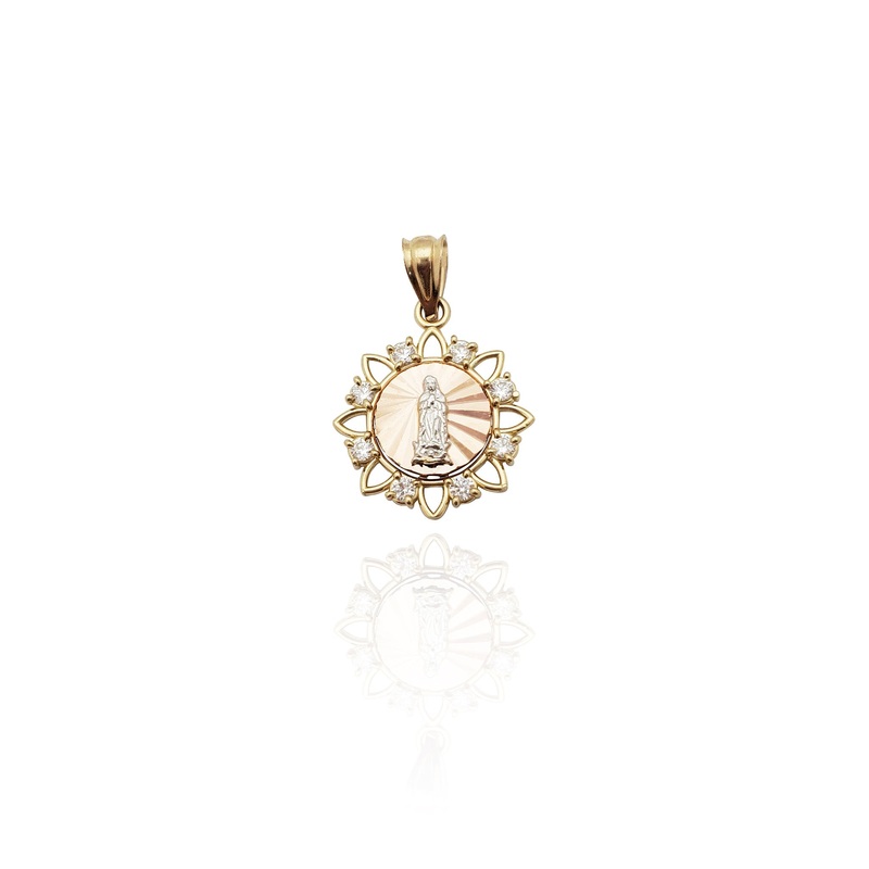 Tri-Color Virgin Mary Spiking CZ Pendant (14K)