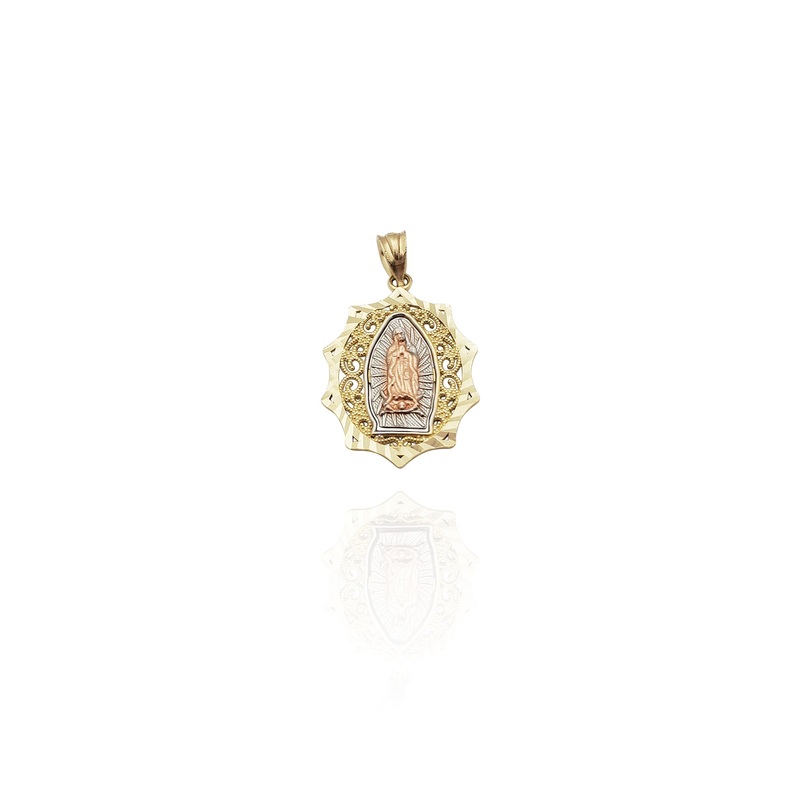 Tri-Color Virgin Mary Spiking Pendant (14K)