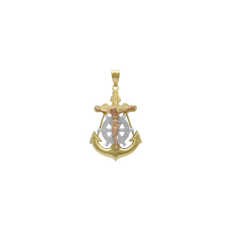 Tri-Tone Mariner’s Crucifix Anchor Pendant (14K)