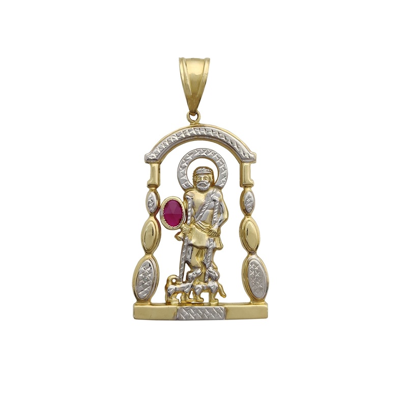 Tri-Tone Shrine Red Stone Saint Lazarus Pendant (14K)