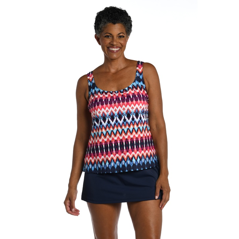 A heritage print reinterpreted in red, white and blue brings a touch of tradition to this tankini. Styled with a flattering scoop neck, this swim top features built-in cups and thick, over-the-shoulder straps that keep you comfortably supported. Top sold separately.