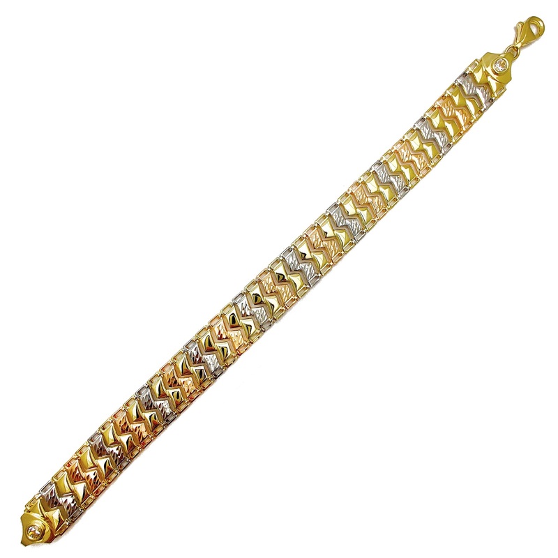 Precious Metal: 14 KaratTri-ToneGoldType of Clasp/Lock: Lobster LockGemstone: Cubic ZirconiaStones may be upgraded upon requestLink Width:12.0 mm*Length: 7 inches*Weight: 8.4 grams**All weights and measurements are approximate.Please contact us if you have