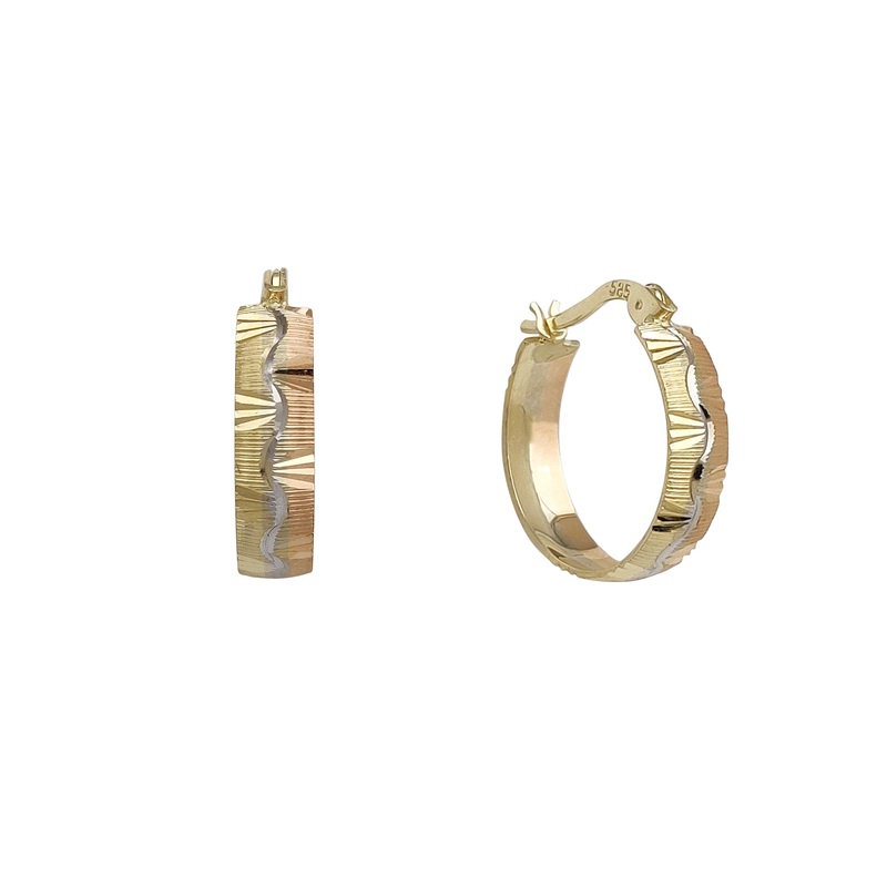 Tricolor Diamond Cuts Hoop Earrings (14K) 0.7 INCH | 4.5 MM | 2.7 GRAMS