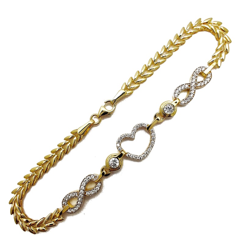 Precious Metal: 14 Karat Two-Tone GoldType of Clasp/Lock: Lobster LockGemstone: Cubic ZirconiaStones may be upgraded upon requestHeart Height: 9.9 mm*Link Width:4.0 mm*Length: 7 inches*Weight: 5.2 grams**All weights and measurements are approximate.Please