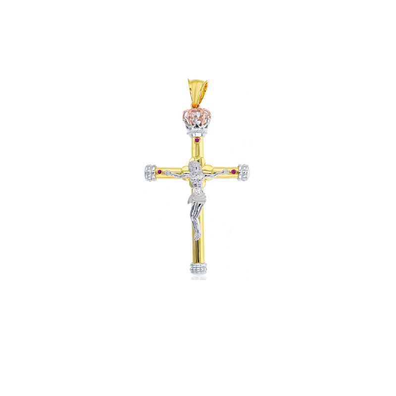 Tricolor Red CZ Jesus Cross Pendant (14K)