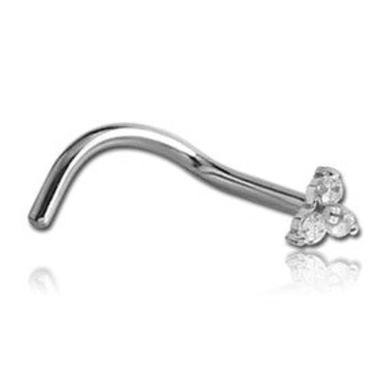The cz trinity nostril screw is made from 316L stainless steel. The prong-set gems are available in clear only. Choose your size below.