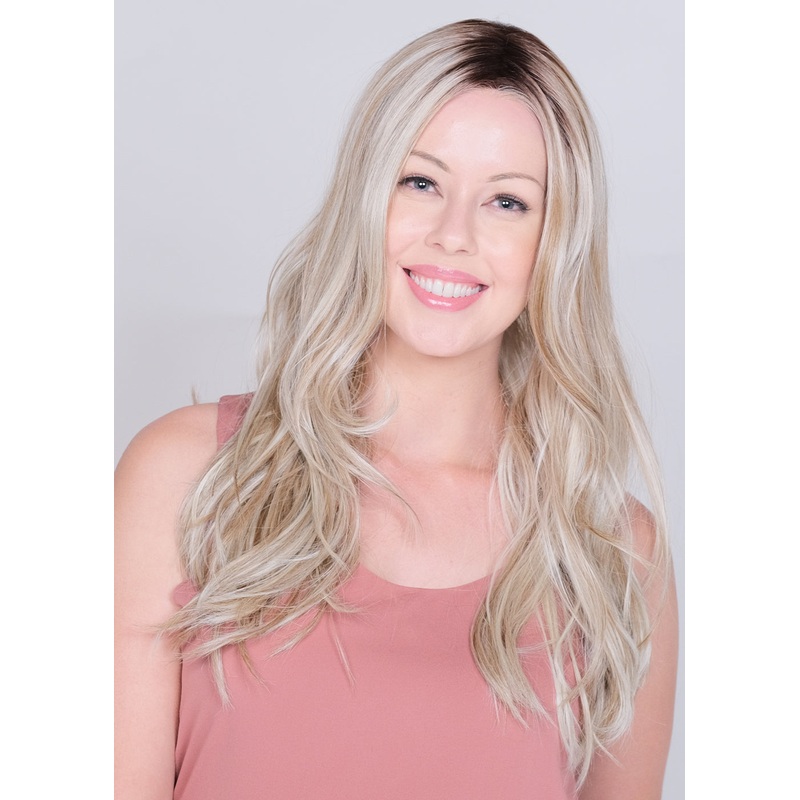 This design comprises a Center Partial mono, Extended half-moon lace Front, and the same Luxurious BT fiber. Belle Tress Original, Carefree, deconstructed layers and curls, no comb or brush needed. Whether you opt for a polished look or a beachy, undone vi
