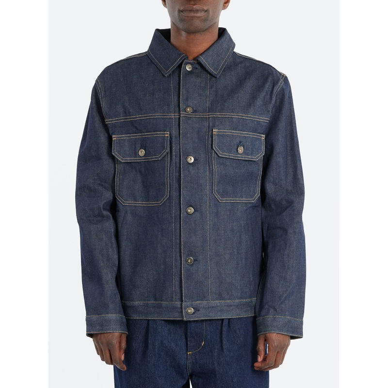 Inspired by original denim workwear jackets, Universal Works’ version is a looser fit for comfort and more movement. It has two button flap chest pockets and two angled welt pockets.