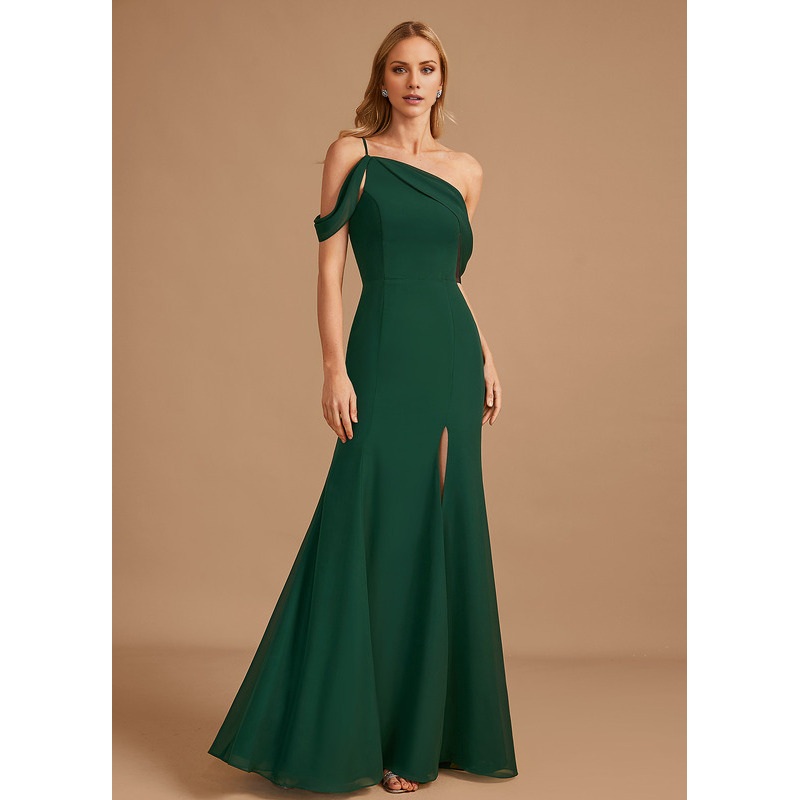 Trumpet Mercedes-tail One-shoulder Floor-length Chiffon Bridesmaid Dress