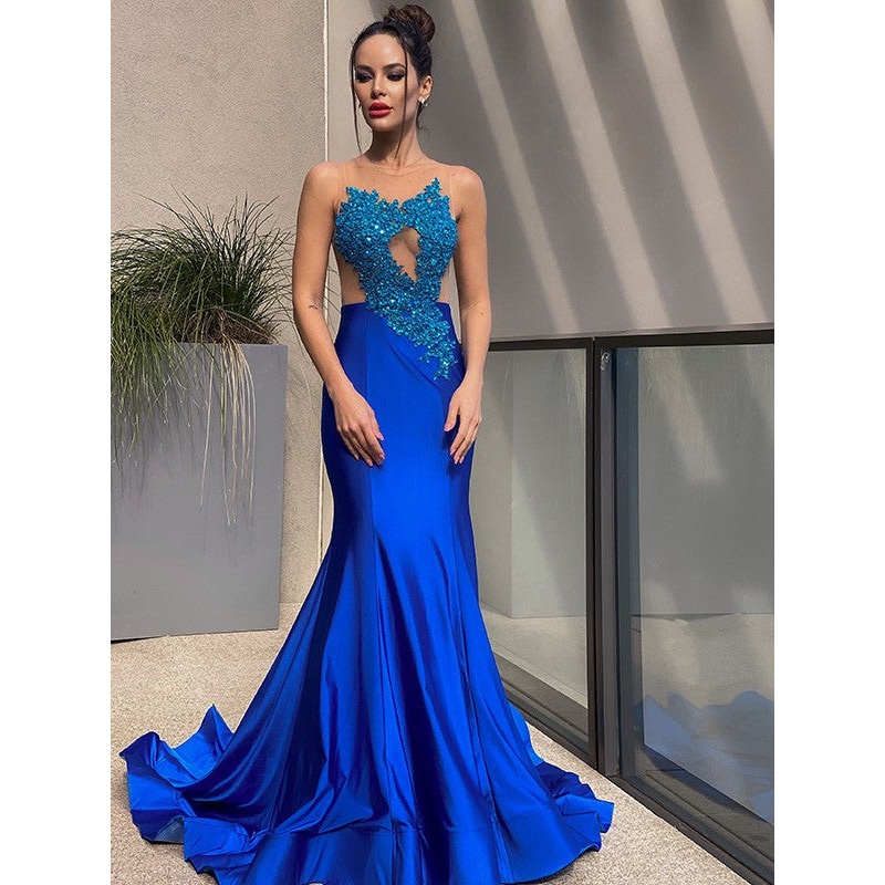 Trumpet/Mermaid Applique Jersey Scoop Sleeveless Sweep/Brush Train Dresses