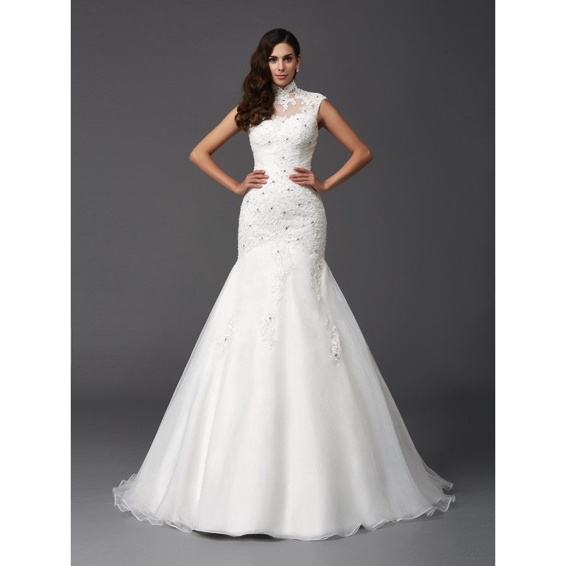 Trumpet/Mermaid High Neck Beading Sleeveless Long Organza Wedding Dresses