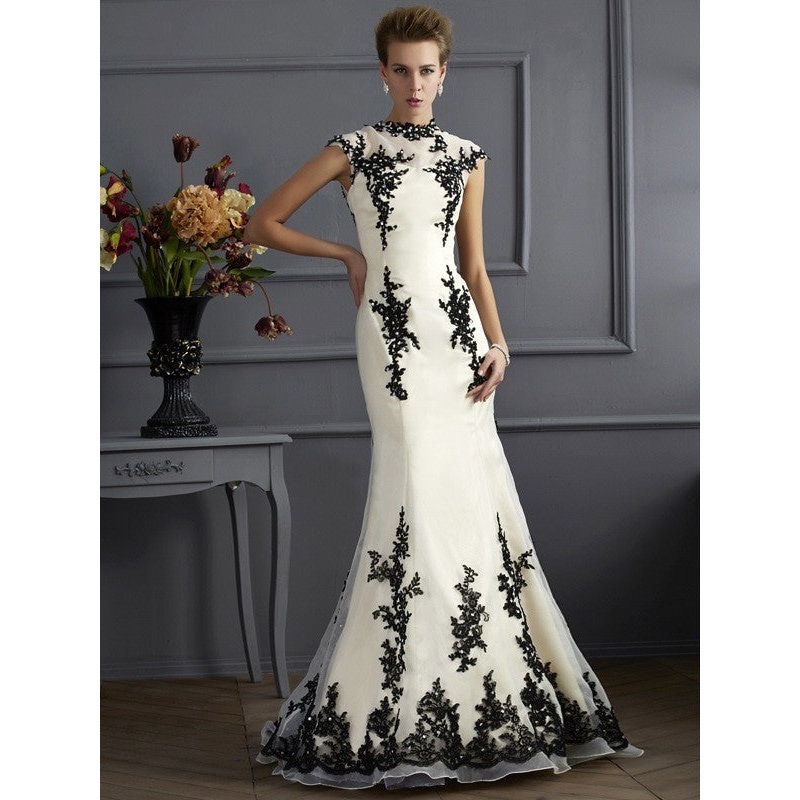Trumpet/Mermaid High Neck Short Sleeves Applique Long Organza Mother of the Bride Dresses