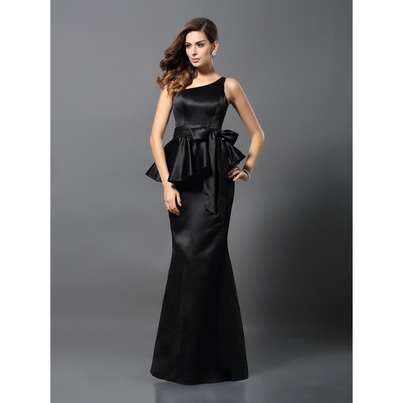 Trumpet/Mermaid One-Shoulder Bowknot Sleeveless Long Satin DressesTrumpet/Mermaid One-Shoulder Bowknot Sleeveless Long Satin Dresses