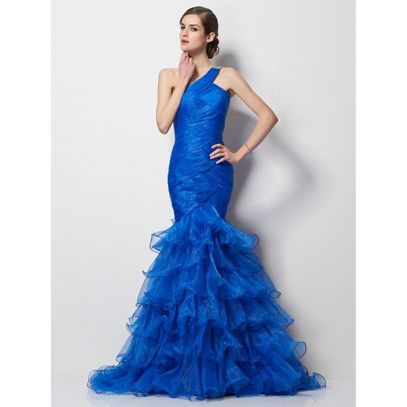 Trumpet/Mermaid One-Shoulder Sleeveless Pleats Long Tulle Dresses