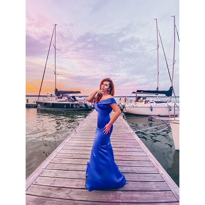 Trumpet/Mermaid Satin Ruffles Off-the-Shoulder Sleeveless Sweep/Brush Train Dresses