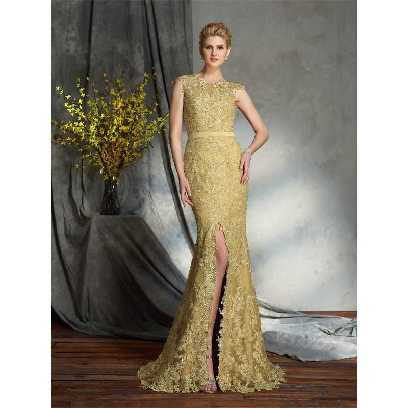 Trumpet/Mermaid Scoop Lace Sleeveless Long Lace Mother of the Bride Dresses