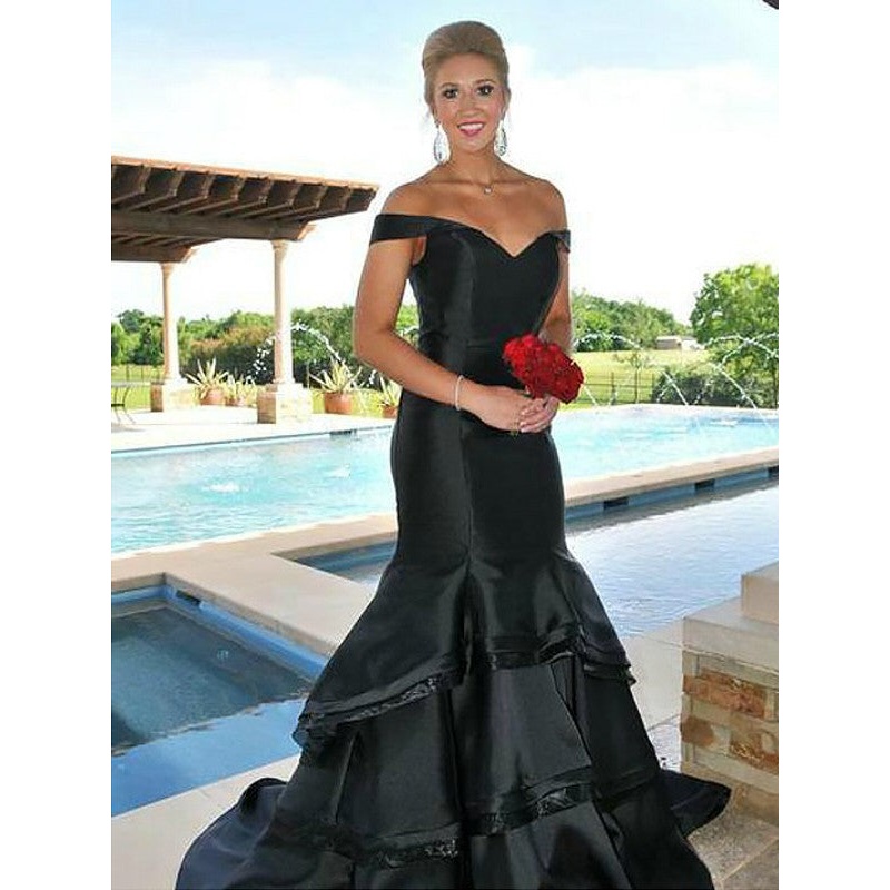 Be the first to review “Trumpet/Mermaid Sleeveless Off-the-Shoulder Satin Layers Sweep/Brush Train Dresses”