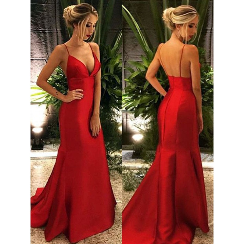 Be the first to review “Trumpet/Mermaid Spaghetti Straps Sleeveless Sweep/Brush Train Ruffles Satin Dresses”