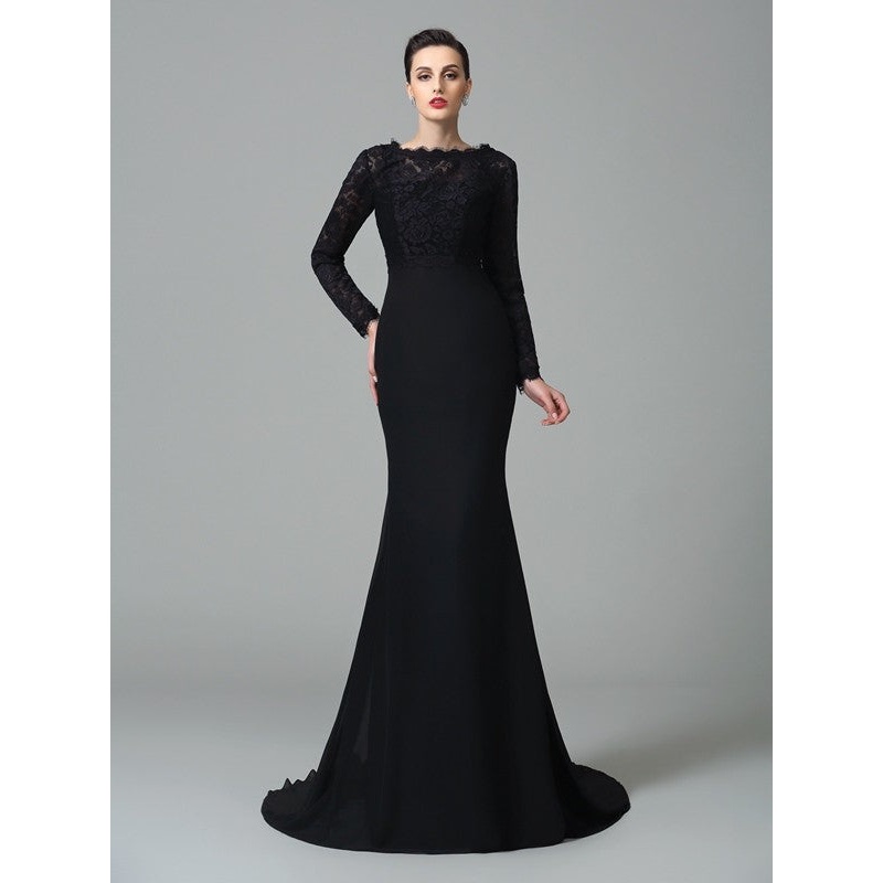 Trumpet/Mermaid Square Lace Sleeveless Long Chiffon Dresses