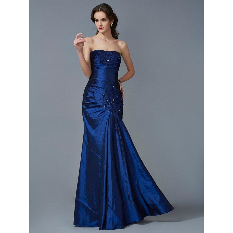 Trumpet/Mermaid Strapless Sleeveless Applique Long Taffeta Dresses