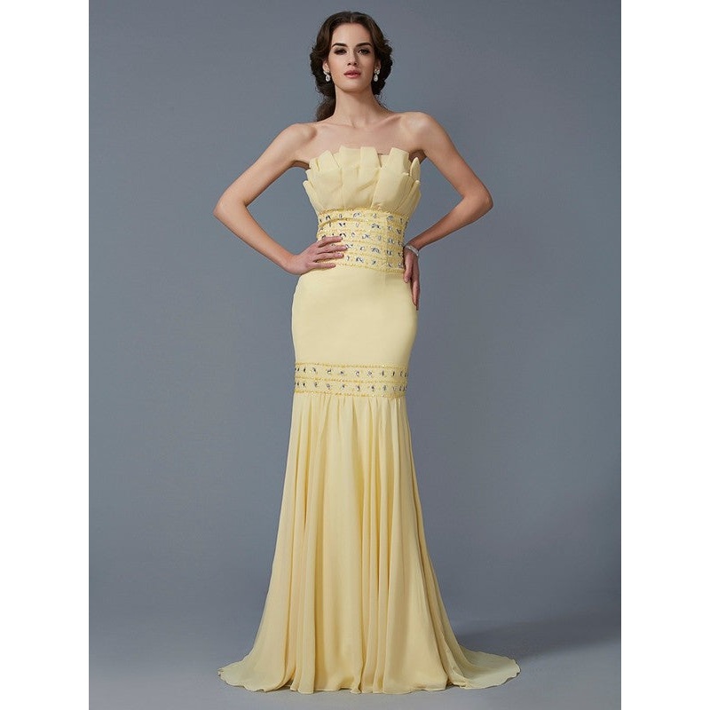 Trumpet/Mermaid Strapless Sleeveless Beading Long Chiffon Dresses